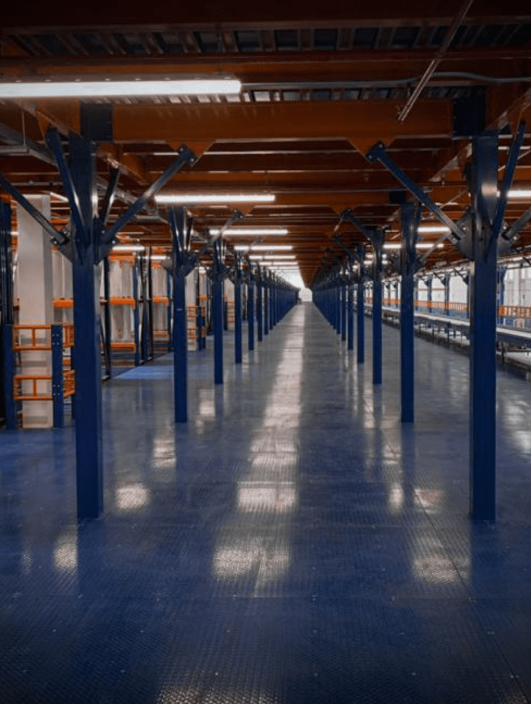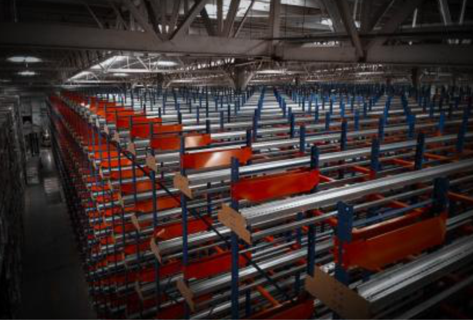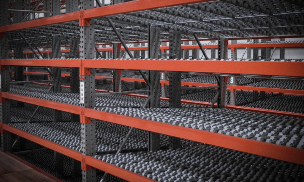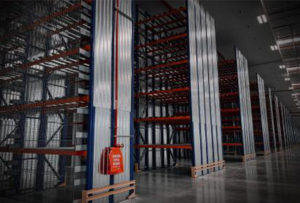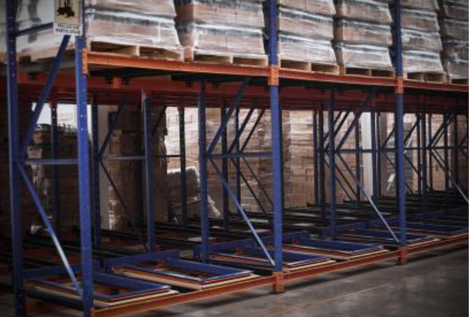 (PEPS) Sistema a través de túneles configurados en diversos niveles y fondos de tarima en base a uno óptimo. El Drive In con acceso al tunel de operación es ideal para el aprovechamiento de espacio, espalda con espalda.